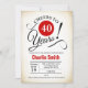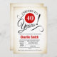 40th Birthday Party Invitation in Red White Black with retro creamy background. Cheers to 40 years! Can be personalised into any year.