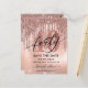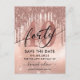 Modern 40th birthday party save the date postcard. Design features rose gold faux glitter & foil background with sparkly glitter drops and typography script ''forty''. Personalise with a date & name.