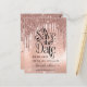 Modern 40th birthday party save the date postcard. Design features rose gold faux glitter & foil background with sparkly glitter drops and typography script ''forty''. Personalise with a date & name.