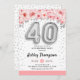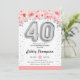 40th birthday party invitation. Elegant design in faux glitter silver with floral accent. Invite card with silver number 40 balloons, script font with confetti. Blush coral pink, white. Perfect for a stylish fortieth bday celebration. Message me if you need custom age.