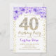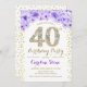 40th Birthday Party - White Gold Purple Invitation