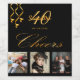 A bottle label for a glamourous 40th birthday party. Personalise and add 3 of your own photos, a name, age 40 and a date. Date of birth or the date of the party. Golden coloured letters. The word: Cheers, in faux gold written with a trendy hand lettered style script. Elegant, classic chic black background colour, decorated with faux gold party streamers.