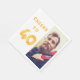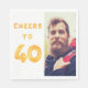 A napkin for a 40th birthday party. Template for your photo. White background and the tex: Cheers to 40. The text is written with a trendy faux gold balloon script.