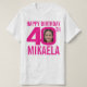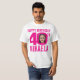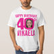 Happy 40th Birthday pink text, custom front, and back photo, and name t-shirt. Fun 40th personalised photo hot pink and white birthday tee design. Personalise this birthday shirt with two photographs of the birthday girl in the middle of the number 0 on the front and back ideal for a past and present photo opportunity. Great idea for adding some fun to a milestone fortieth birthday party or event. Other matching items and colours are available. Exclusive design by Sarah Trett for www.mylittleeden.com
