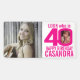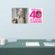 Look who is 40 custom two photos now and then and name 40th birthday small party banner. Fun personalised photo birthday graphic design in hot pink on white. Personalise with a photograph of the birthday girl in the middle of the number 0. Great idea for adding some fun to a fortieth milestone birthday party or event. Other matching items and colours are available. Exclusive design by Sarah Trett for www.mylittleeden.com