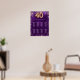 A seating chart for a 40th birthday party. A deep purple background decorated with faux glitter, sparkles. The purple colour is uneven. Personalise and a name. 8 tables with 10 guests on each table.
