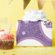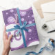 An elegant, glamourous and girly wrapping paper. Purple and pink ombre coloured faux glitter with faux pastel pink diamonds. Perfect for an elegant 40th birthday party for her. White and purple, lavender coloured frames with templates for name and age. Age number 40 in purple, name in black. The name is written with a hand lettered style script.