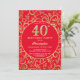 40th Birthday Red and Gold Floral Pattern Birthday Invitation. For further customisation, please click the "Customise it" button and use our design tool to modify this template.