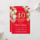 40th Birthday Red and Gold Glitter Balloons Invitation