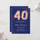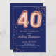 40th Birthday - Rose Gold Balloons Navy Invitation