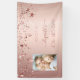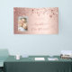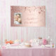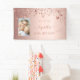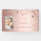 A banner for a girly and glamourous 40th birthday party. A faux rose gold metallic looking background with shiny and glittery dripping stars. Personalise and add your own photo, a name written in dark rose gold with a large modern hand lettered style script with swashes. To keep the swashes only delete the sample name, leave the spaces or emoji's in front and after the name. Templates for a date and age 40.