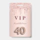 A modern, stylish and glamorous badge for a 40th birthday party. A faux rose gold metallic looking background with an elegant faux rose gold glitter drip, paint drip look. The name is written with a modern dark rose gold colored hand lettered style script. With the text: VIP Number 40 is written with a balloon style font, script.