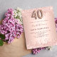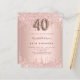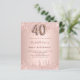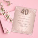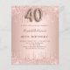 A modern, stylish and glamourous invitation for a 40th birthday party. A rose gold background with drips, paint drip look. The name is written with a modern dark rose gold coloured hand lettered style script. Personalise and add your party details. Number 40 is written with a balloon style font, script.