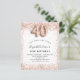 40th birthday rose gold white invitation