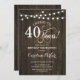 Rustic simple design with dark brown wood pattern and fairy string lights. Features script font. Cheers to 40 years! Can be personalized into any age! Message me if you need further customization.
