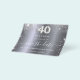 An elegant Save the Date for a 40th birthday party. A modern faux silver metallic looking background, decorated with faux glitter dust. Personalise and add a date and name/age. The text: Save the Date is written with a large trendy hand lettered style script. Number 40 with a balloon style font.