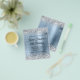 Faux sparkly silver glitter against a shiny light and pail blue ombre faux metallic foil graphic image.