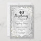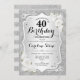 40th Birthday Invitation. Elegant floral design in silver and white. Features faux glitter silver stripes, white roses stylish script font and confetti. Perfect for a glam birthday party.