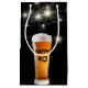 Party sparkler in a cold glass of beer with light string on black background for 40th birthday.
