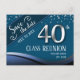 Save the date high school or Class reunion postcards. Blue theme with faux foil silver 40th with bold white text. All text is customisable except for the 40 and can be changed for your own party needs. Class banners can also be found in my shop.