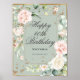 40th Fortieth Forty Birthday Floral Sage Green Poster