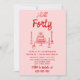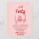 40th Hand Drawn Pink Red Cake Hello Forty Birthday Invitation