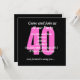 40th party invitation template for you to customise. Pink number forty on a black background.