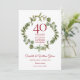 Featuring an elegant woodland greenery garland, this chic botanical 40th wedding anniversary save the date card can be personalised with your special ruby anniversary information. The reverse features a matching floral garland framing your anniversary dates in elegant white text on a ruby red background. Designed by Thisisnotme©