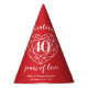 40th ruby wedding anniversary party hats. The design features white script typography on red with your names and the words celebration of 40 years of love in script style font and a line art heart gemstone. Personalise with your names and anniversary wedding dates. The fortieth wedding anniversary is associated with the gemstone red ruby and the heart symbolises love. Other matching ruby wedding anniversary items available. Line art and design by www.mylittleeden.com on zazzle.