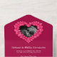 Ruby 40th wedding anniversary party event with photo and detachable RSVP invitations can be sealed so no envelope is required. A beautiful ruby gemstone effect in a heart shape printed graphics wedding anniversary invitations, personalise with your own wedding anniversary party details, a photo of the happy couple. Make it easy for you and your guests to send as no envelope is required simply handwrite on your sealed invitations and your guests can reply with the detachable rsvp and affixing a stamp for quick and easy guest responses. The fortieth wedding anniversary is associated with the red gemstone ruby and the heart symbolises love. Other matching items are available. Graphics and design by Sarah Trett for www.mylittleeden.com