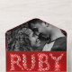 Ruby 40th wedding anniversary party or event with photo and detachable RSVP invitations can be sealed so no envelope is required. A beautiful ruby in gemstones graphic wedding anniversary invitations, personalise with your own wedding anniversary party details, a photo of the happy couple. Make it easy for you and your guests to send as no envelope is required simply handwrite on your sealed invitations and your guests can reply with the detachable rsvp and affixing a stamp for quick and easy guest responses. The fortieth wedding anniversary is associated with the red gemstone ruby. Other matching items are available. Graphics and design by Sarah Trett for www.mylittleeden.com