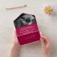 Ruby 40th wedding anniversary party event with photo and detachable RSVP invitations can be sealed so no envelope is needed. A beautiful ruby gemstone effect in a heart shape printed graphics wedding anniversary invitations, personalise with your own wedding anniversary party details, a photo of the happy couple in the top inner flap. Make it easy for you and your guests to send as no envelope is required simply handwrite on your sealed invitations and your guests can reply with the detachable rsvp and affixing a stamp for quick and easy guest responses. The fortieth wedding anniversary is associated with the red gemstone ruby and the heart symbolises love. Other matching items are available. Graphics and design by Sarah Trett for www.mylittleeden.com