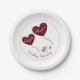 Personalized 40th ruby wedding anniversary paper party plates with red heart balloons.