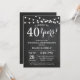 40th Wedding Anniversary Invitation. Chalkboard Background. String Lights. Black and White. 1st, 2nd, 3rd, 4th, 5th, 10th, 15th, 20th, 25th, 30th, 35th, 40th, 45th, 50th, 55th, 60th, 65th, 70th, 75th, 80th, Any Years. Adult Birthday. Woman or Man Male Birthday Party. For further customisation, please click the "Customise it" button and use our design tool to modify this template.