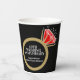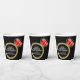 Red and gold ring on a black background modern fun fact and wedding anniversary party paper cups. Personalise these anniversary cups with your own name and fun facts about your couple. Other matching items are also available. © Original graphic ring design by Sarah Trett for www.mylittleeden.com and www.mylittleedenweddings.com on Zazzle.