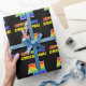 This colourful, cheerful, and fun birthday themed wrapping paper design features a large number "41" and the message "HAPPY BIRTHDAY,", both coloured with a rainbow spectrum gradient inspired pattern, along with a bold yellow custom recipient name. The background is coloured black. Fun wrapping paper like this might be used when wrapping a birthday present or gift being given to somebody who is celebrating their forty first birthday. [~Z0000475]