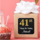 This sophisticated, luxurious, and elegant birthday sticker design features a large ordinal number “41st” having a faux/imitation gold-inspired appearance, in addition to the birthday greeting message “Happy 41st Birthday,” and a customisable name in a script-style font. The background is coloured black. Luxurious stickers like this might be used when wrapping gifts being given to somebody in celebration of their forty first birthday, or perhaps might be handed out to the attendees at a birthday celebration or party. [~Z0000517]