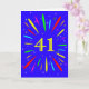 An explosive 41st birthday card! What a wonderful way to send birthday greetings. The number 41 in bright yellow with an explosion of bright colours and stars.