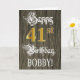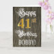 The front of this fancy and luxurious birthday themed greeting card design features the message “Happy 41st Birthday,”, plus a custom recipient name. Part of the message is in elaborate script-style text. The large number “41st” features a faux/imitation gold-inspired look pattern. The background has a faux/imitation woodgrain-inspired pattern. The inside has an editable birthday greeting message, or could perhaps be cleared and left blank if a message is to be written by hand instead. An elegant, editable birthday greeting card like this might be sent in celebration of somebody’s forty-first birthday. [~Z0000561]