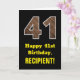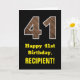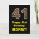 41st Birthday: Name, Faux Wood Grain Pattern "41" Card