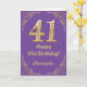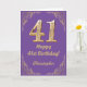 41st Birthday Purple and Gold Glitter Frame Card