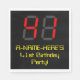 This silly and geeky birthday themed paper napkin design features a large number "41" with a red seven segment digital display inspired appearance, along with an editable name and the message "41st Birthday Party!" in nerdy yellow text, on a black coloured background. Birthday themed paper napkins like this might be used when celebrating somebody’s forty first birthday. [~Z0000388]