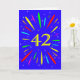 An explosive 42nd birthday card! What a wonderful way to send birthday greetings. The number 42 in bright yellow with an explosion of bright colours and stars.
