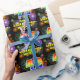 This cheerful and joyful birthday-themed wrapping paper design features a large number “42” having a colourful rainbow spectrum gradient inspired pattern. It also features the message “Happy 42nd Birthday,”, and a customisable name. The background features a vibrant and colourful pattern inspired by the look of bursting celebratory fireworks. Birthday themed wrapping paper like this might be a fun way to wrap a gift or present being given to celebrate somebody’s forty second birthday. [~Z0000587]
