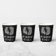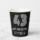 This 1920s-1930s style inspired and vintage look birthday themed paper cup design features a large art deco inspired appearance number “43”, in addition to the birthday greeting message “Happy 43rd Birthday,” and a personalised name. It also has a black-coloured background. Paper cups like this might be used at a party held in celebration of somebody’s 43rd birthday. [~Z0000542]