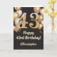 43rd Birthday Black and Gold Balloons Confetti Card. For further customisation, please click the "Customise it" button and use our design tool to modify this template.