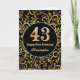 43rd Birthday Black and Gold Floral Pattern Birthday Card. For further customisation, please click the "Customise it" button and use our design tool to modify this template.