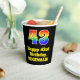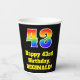 This colourful and fun birthday-themed paper cup design features a large number “43” with a rainbow spectrum gradient inspired pattern, along with the message “Happy 43rd Birthday,”, and a customisable name. It also has a black-coloured background. Vibrant, colourful paper cups like this might be fun to have at a birthday celebration/party being held to celebrate somebody’s 43rd birthday. [~Z0000537]