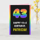43rd Birthday: Colourful Rainbow # 43, Custom Name Card