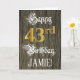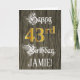 The front of this formal and elegant birthday themed greeting card design features the message “Happy 43rd Birthday,”, plus a custom recipient name. Part of the message is in elaborate script-style text, the large number “43rd” features a faux/imitation gold-inspired look pattern, and the background has a faux/imitation woodgrain-inspired pattern. The inside has a personalised birthday greeting message, or could perhaps be cleared and left blank if a message is to be written by hand instead. A fancy, customisable birthday greeting card like this might be sent in celebration of somebody’s forty-third birthday. [~Z0000561]